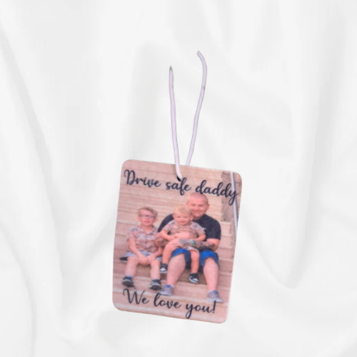 Personalised airfresheners these are perfect for photos or even your business logo ! Perfect thing about these is you add your own fragrance that lasts and lasts!