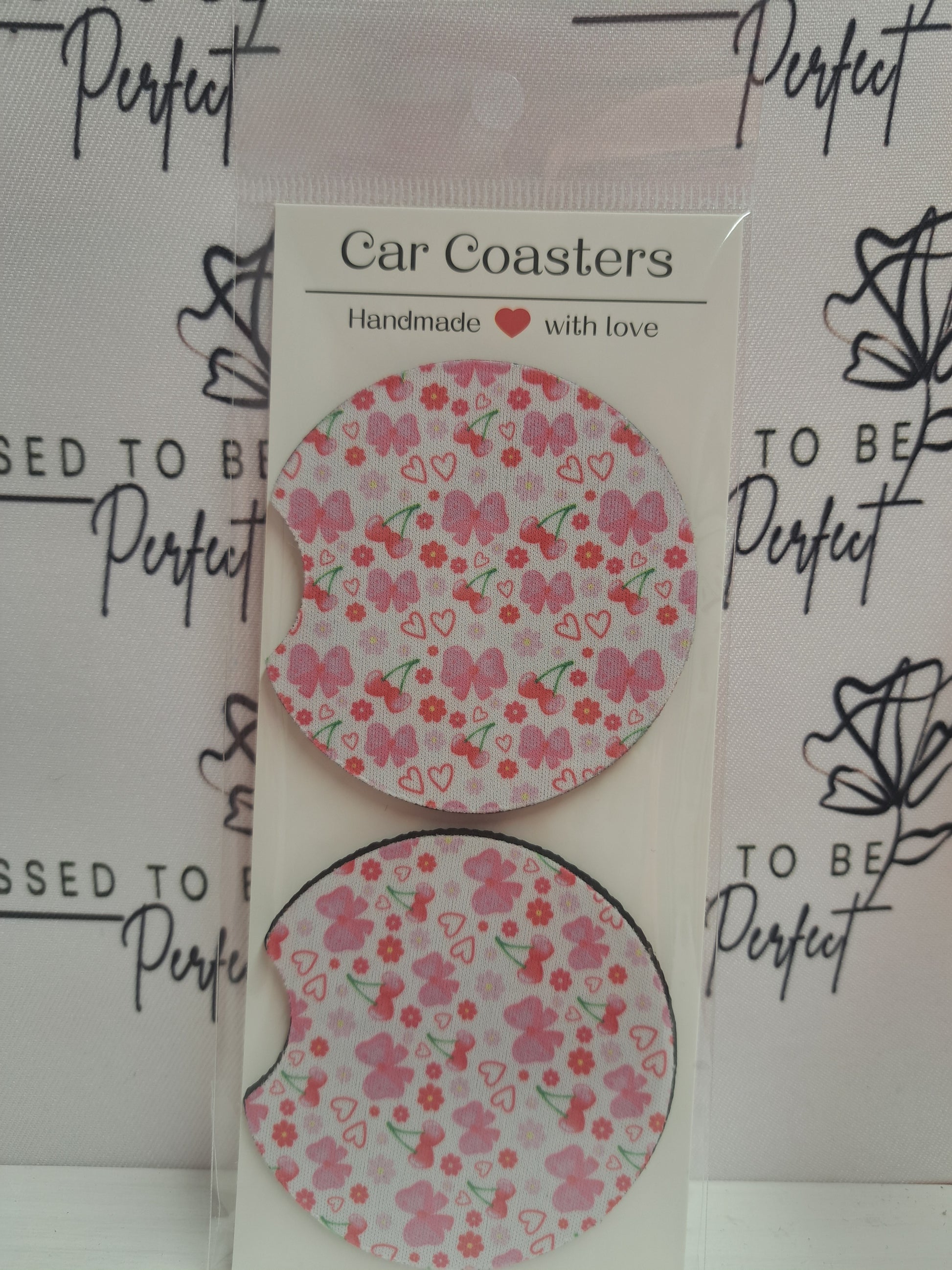 Protect your car's cup holder with our Bows & Cherries car coaster. Made with durable materials, this coaster prevents spills and condensation from damaging your cup holder. Keep your car clean and stylish with Bows & Cherries. Perfect for any car owner.