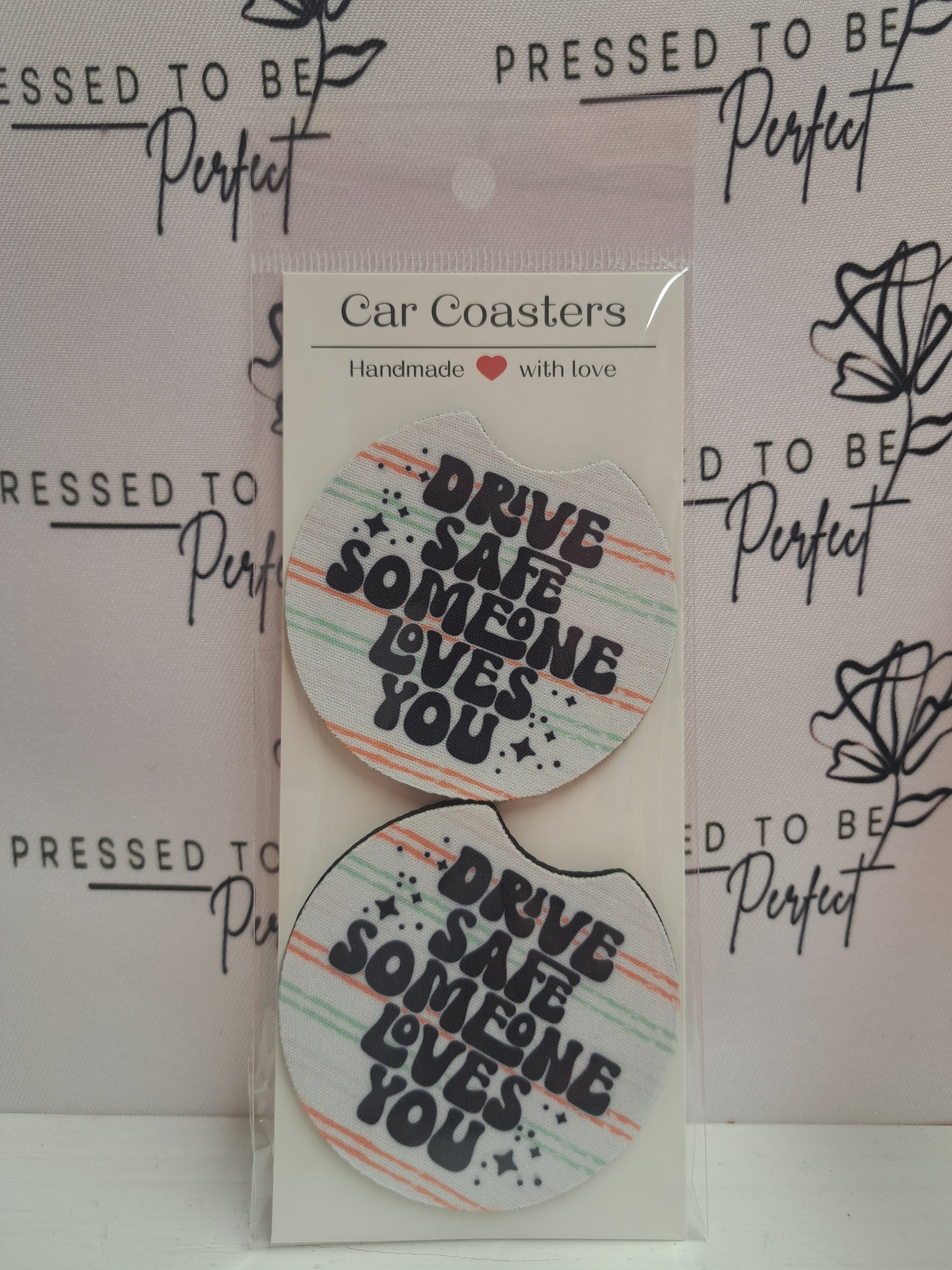 Stay safe on the road with Drive Safe, the perfect accessory for any car. These car coasters remind you to stay focused while driving, so you can arrive at your destination safely. Perfect for you or as a thoughtful gift for a loved one, because someone loves you enough to want you to stay safe.