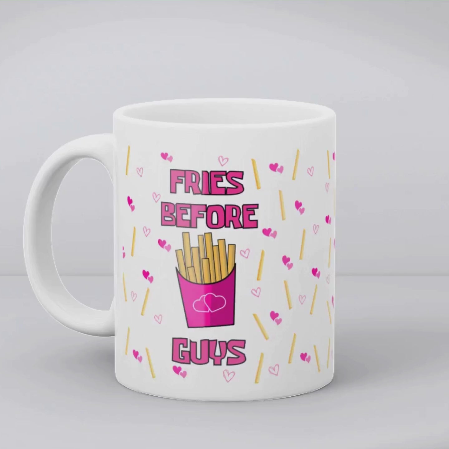 Join the Fries Before Guys club with our mug, perfect for sipping on your favorite bev while showing off your love for fries and independence. Say bye-bye to bad dates, hello to delicious snacks!