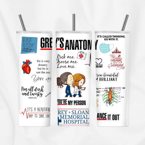 Stay hydrated (and stylish) on your shifts with this Greys tumbler! Perfect for Grey's Anatomy fans, it features a sleek design while keeping your drinks at the perfect temperature. No more dull water (or coffee) for you!