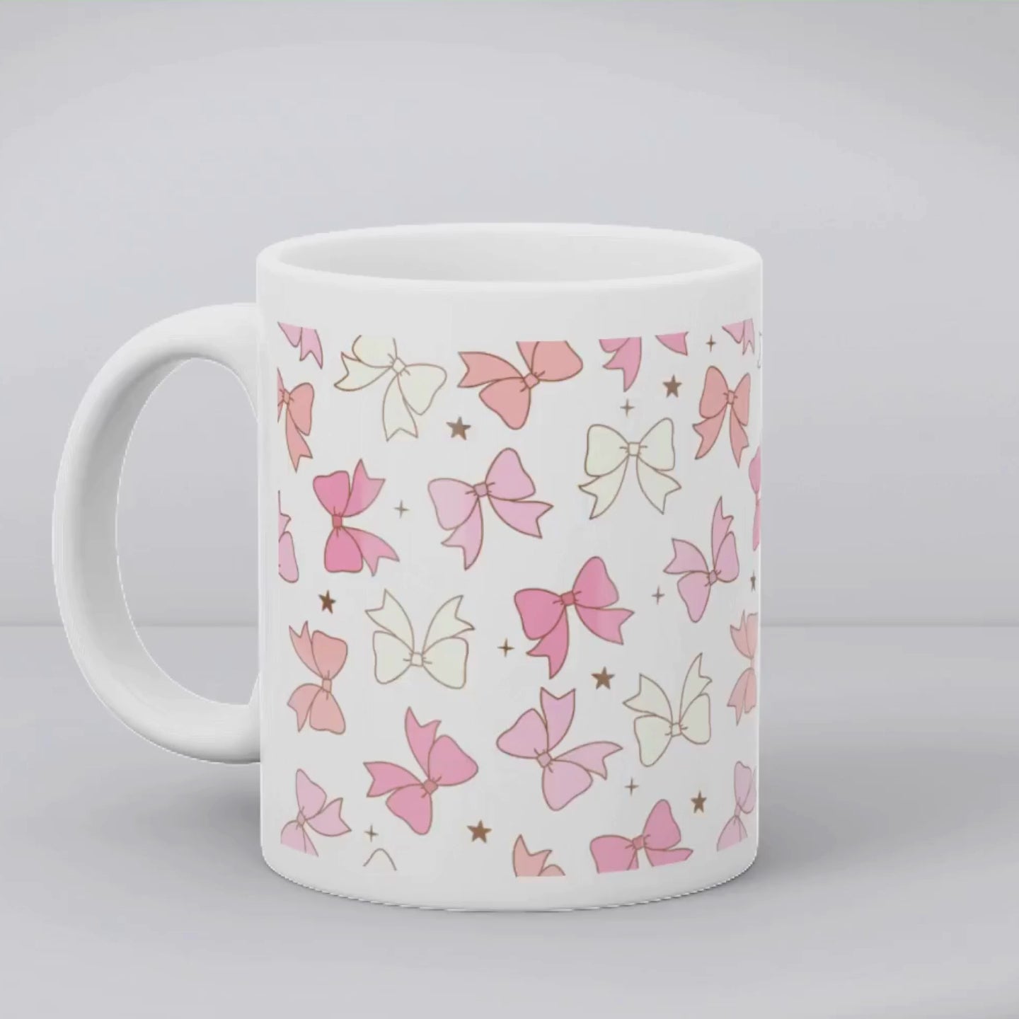 Indulge in the luxurious elegance of our Pink Bows mug. Crafted from premium materials, the mug features charming pink bows, adding a touch of sophistication to your morning coffee or tea routine. Savor the moment with every sip in this exclusive, stylish mug.
